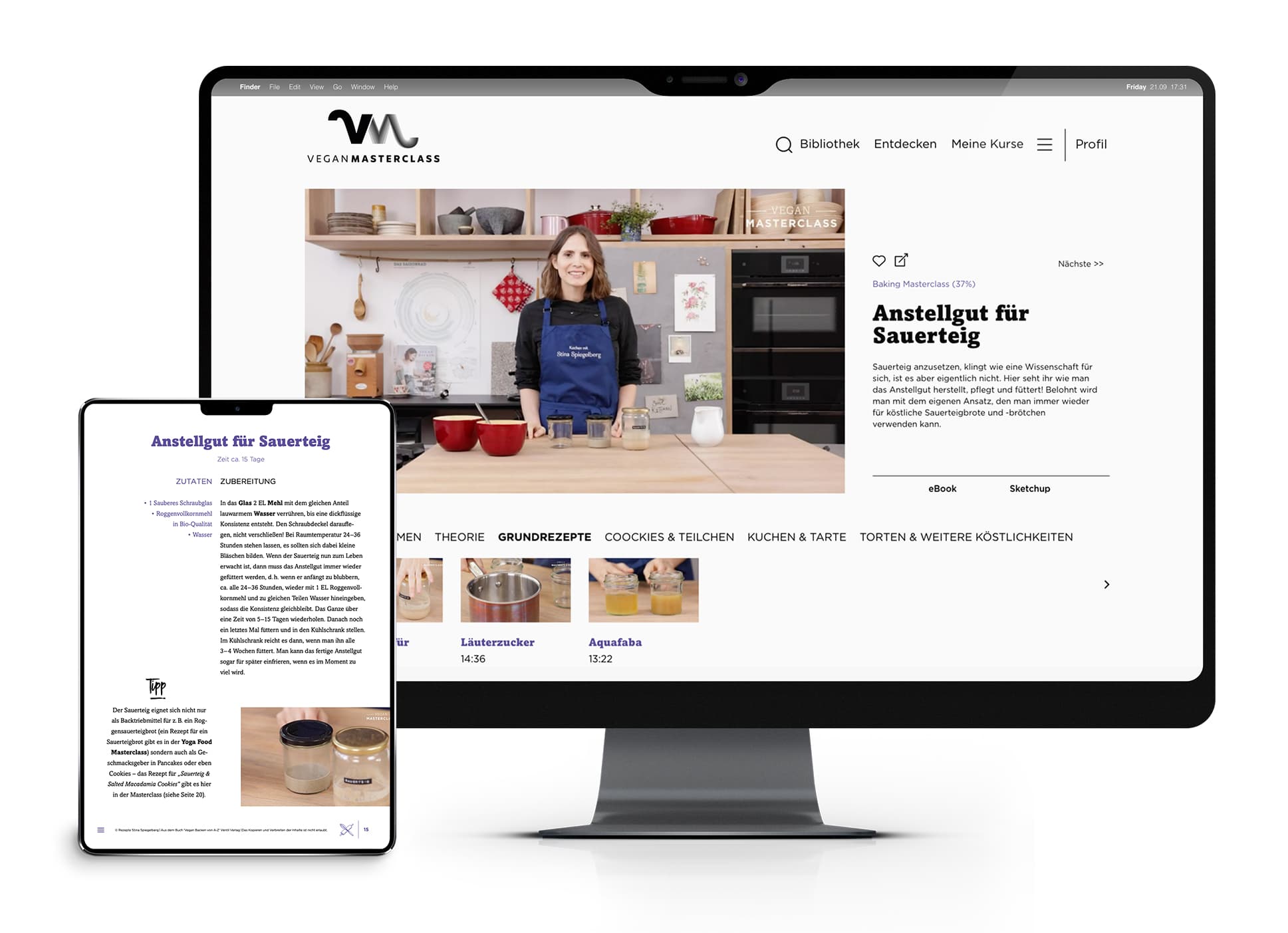 Lerne u.a. alles rund um die verschiedenen Teigarten und Mehle, erkenne die Eigenschaften von Ei und wie du sie pflanzlich ersetzen kannst, wie Aquafaba funktioniert und wie du Läuterzucker herstellst. Mit Stinas Tipps wird dein nächstes Backwerk alle umhauen!