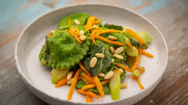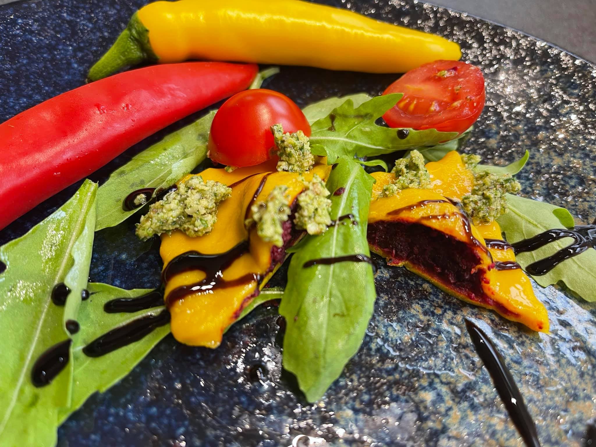 Ravioli mit Rote-Bete-Macadamia-Füllung & Walnuss-Pesto
