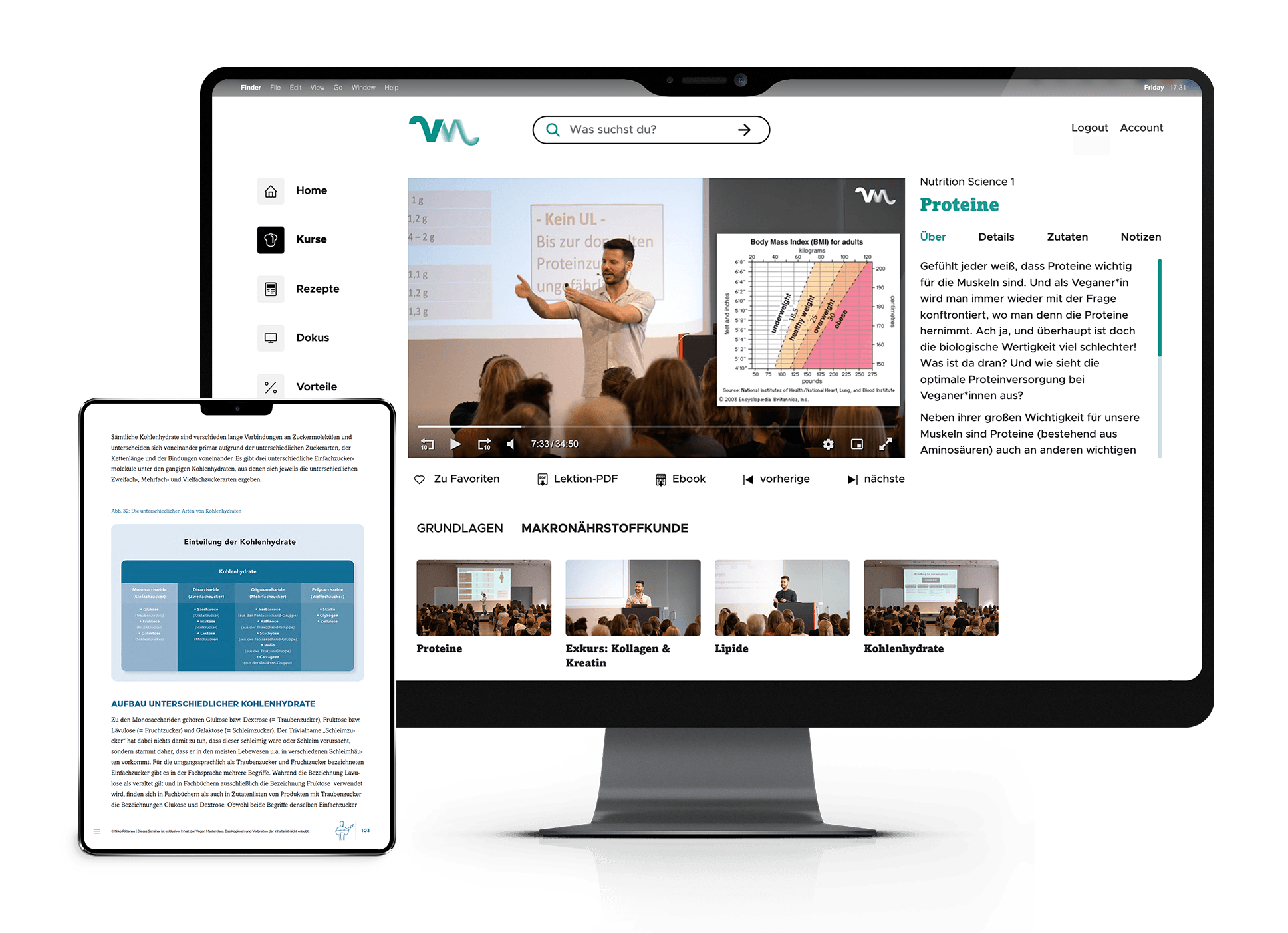 In seinem mehrtägigen Ernährungsseminar „Mehr Gesundheit, Leistungsfähigkeit & Wohlbefinden bei pflanzlicher Ernährung“ gab Niko Rittenau sein geballtes Fachwissen weiter, welches nun als digitale Version orts- und zeitunabhängig noch mehr Menschen zur Verfügung steht. Dabei beinhaltet der Onlinekurs „Nutrition Science Seminar Vol.1“ den ersten Teil des mehrteiligen Seminars. Neben dem Video-Mitschnitt mit aufbereiteten Grafiken und Einblendungen gibt es ein vertiefendes eBook, um die Inhalte auch in schriftlicher Form nachlesen zu können.