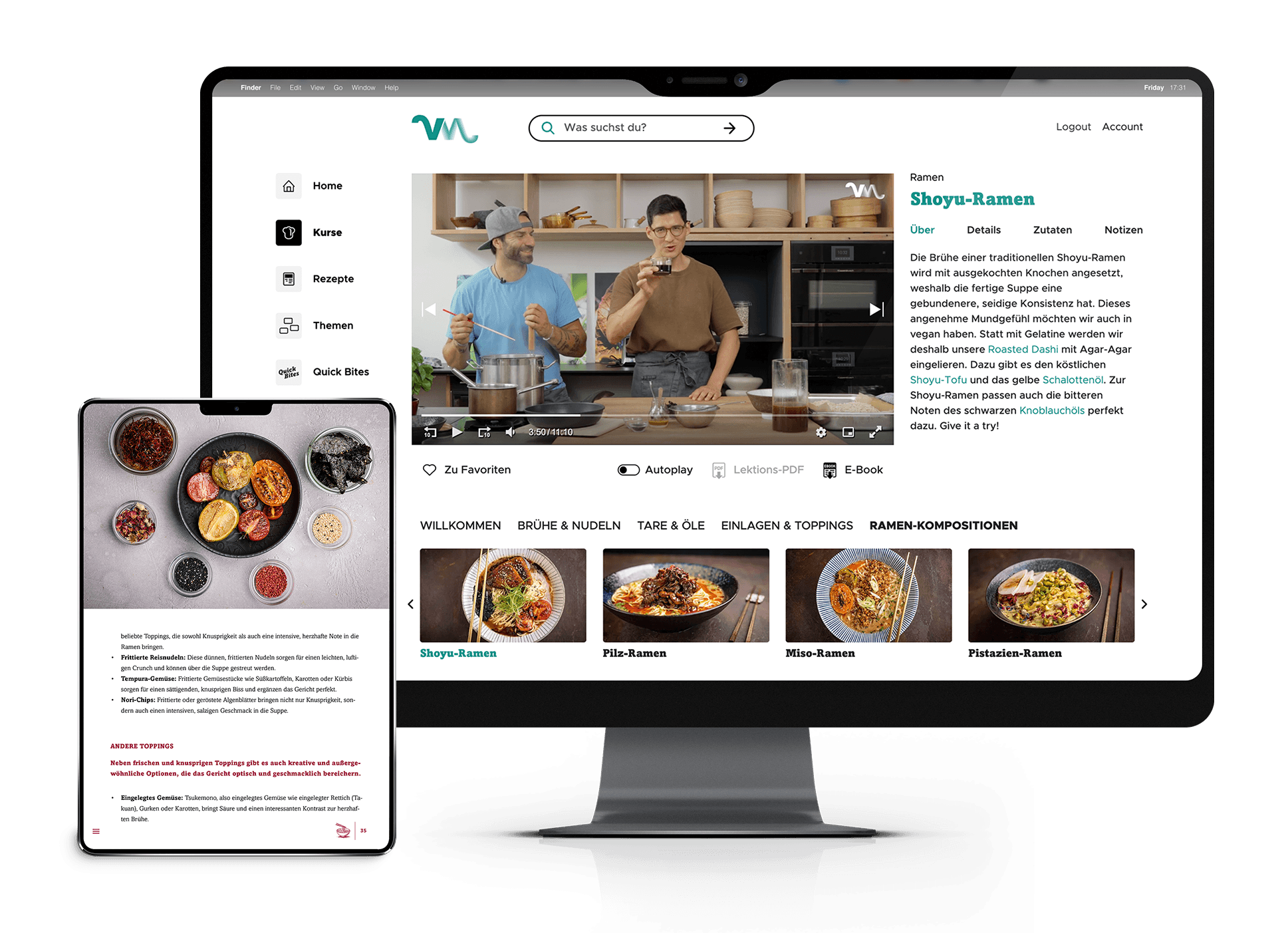 Die vollendete Suppenkunst aus Japan lässt sich auch vegan meistern! Um die kräftige Würze und Deftigkeit des Originals zu erreichen, wirst du lernen, wie du die tierischen Zutaten rein pflanzlich ersetzen kannst und dennoch Umamiaromen erzeugst, die dem Original in Nichts nachstehen! Begeistere dich und deine Gäste mit authentischen Ramen in Restaurantqualität.