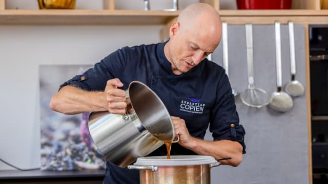 Meistere Klassiker wie z.B. die Demiglace, die vermeintlich rein der Fleischküche vorbehalten ist. Mit den richtigen Techniken entlockst du aus pflanzlichen Zutaten so viel Power, dass du auch Mischköstler von deftigen, veganen Saucen überzeugen kannst. Ob cremig, kräftig, umami oder süß - erweitere dein Repertoire mit Chef-Saucier Sebastian Copien. Nach diesem Kurs zauberst du perfekte Saucen im Handumdrehen!