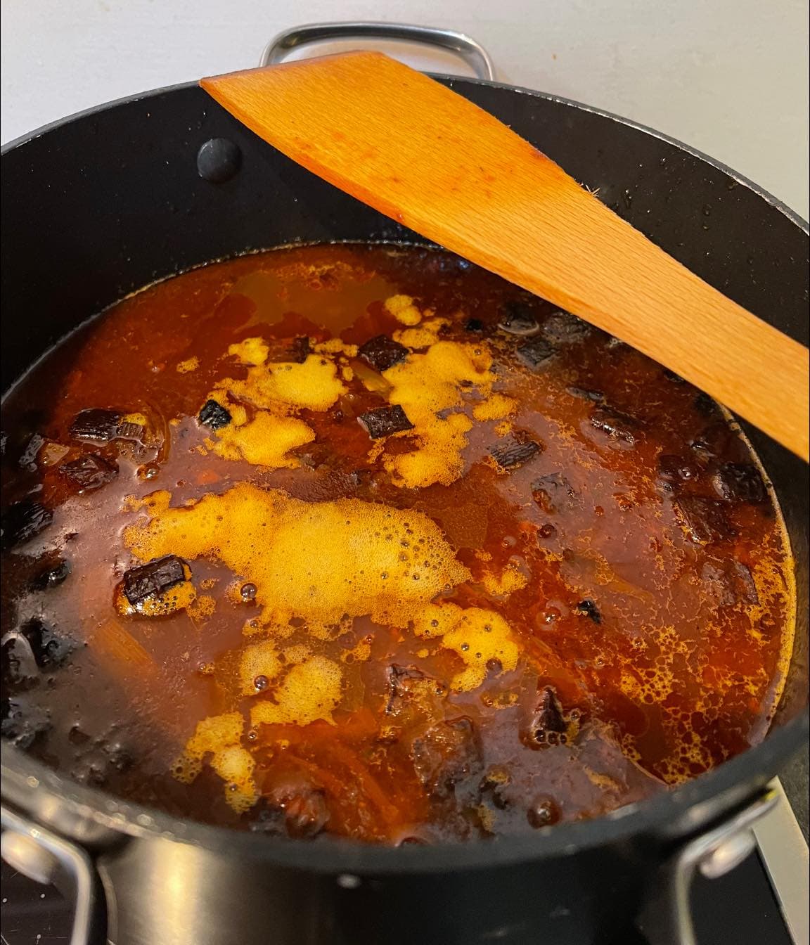"Wir haben uns dieses Wochenende der Demi Glace, gebunden mit der klassischen Roux, gewidmet. Fazit: Es hat sich gelohnt, diese Sauce ist echt der Hammer! Wir haben schon viel Erfahrung mit veganen Saucen und auch schon diverse ‚Bratensaucen‘ gekocht, aber das hat echt alles getoppt!"