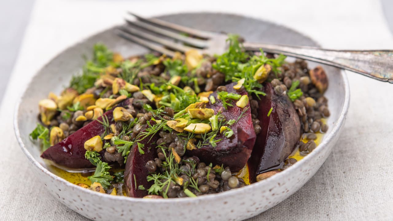 Ofen-Rote-Bete mit Belugalinsen & Vanille