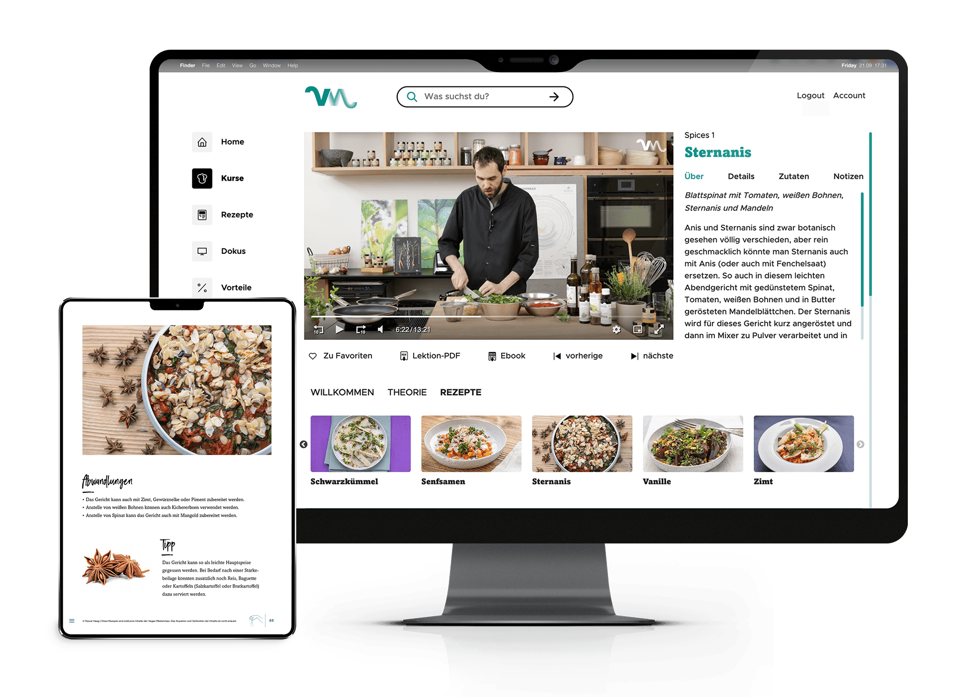 Alle unsere Kurse sind übersichtlich aufgebaut und führen Schritt für Schritt zum Ziel: Vorzüglich pflanzlich Kochen lernen.