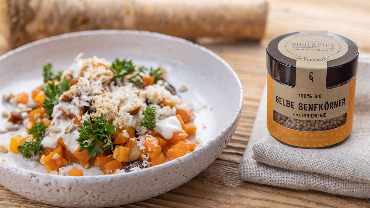 Karotten-Tatar mit Aprikosen & Senfsamen