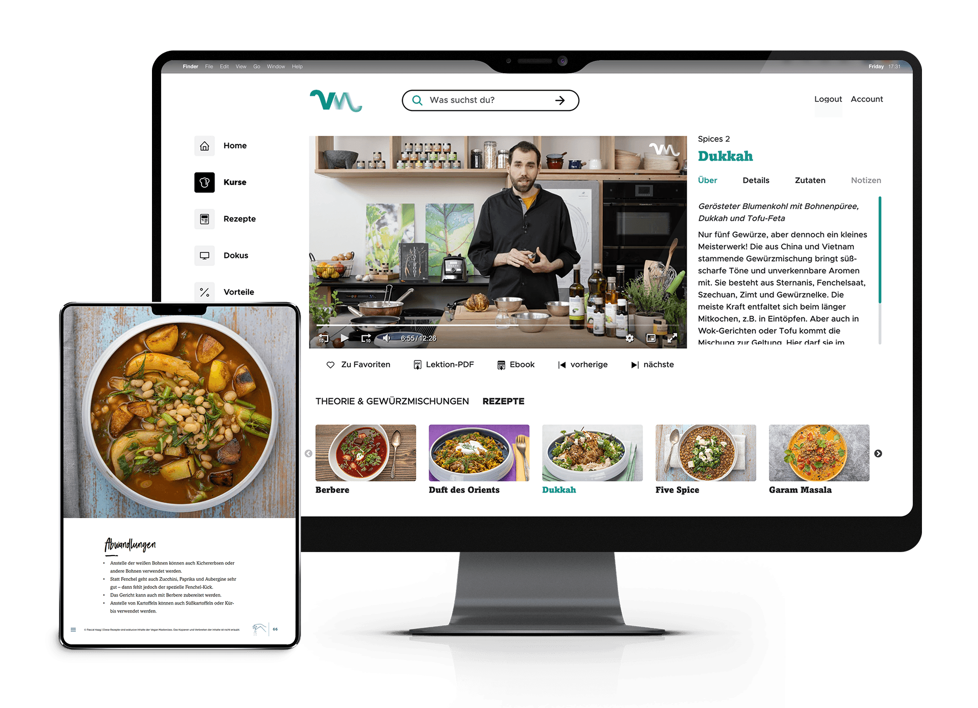Alle unsere Kurse sind übersichtlich aufgebaut und führen Schritt für Schritt zum Ziel: Vorzüglich pflanzlich Kochen lernen.