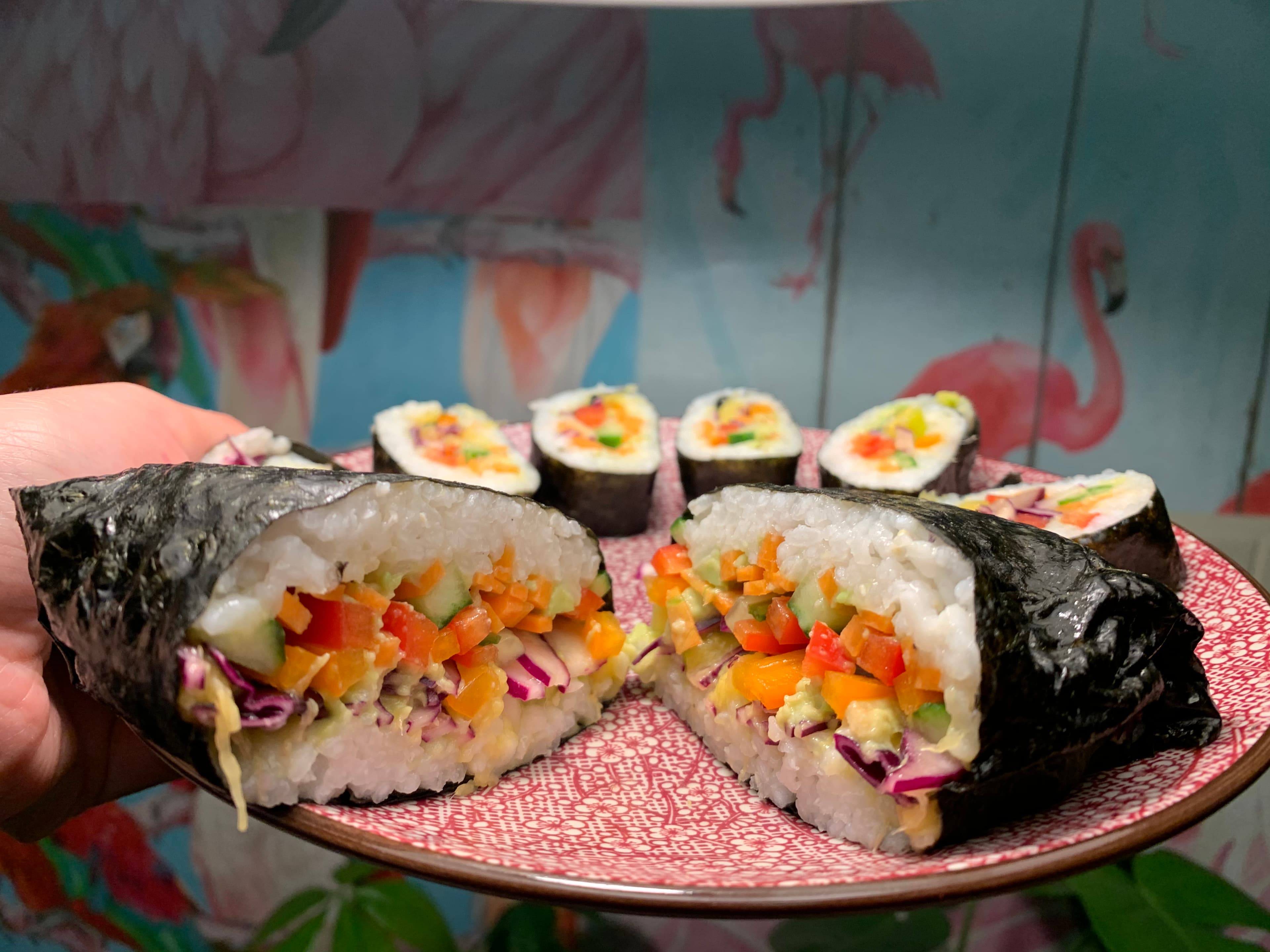 „Dank der Vegan Masterclass schmeckt selbstgekochtes Essen jetzt besser als im Restaurant. Es macht Spaß zu lernen, was man alles aus Gemüse herausholen kann, wie man mit Konsistenzen spielt und so mit kleinen Kniffen den Geschmack auf ein völlig neues Level hebt. Auf dem Bild sind die Sushi-Sandwiches aus der To Go Masterclass zu sehen."