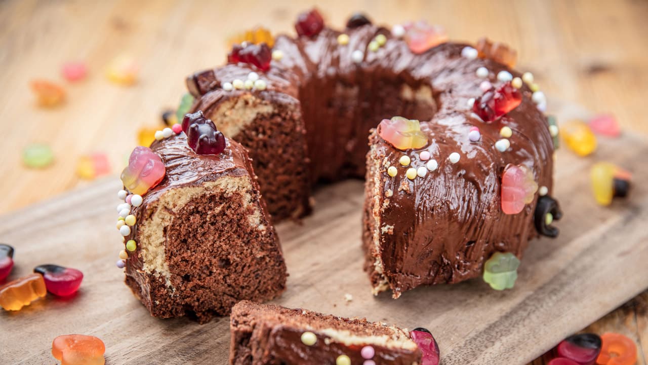 Bunt dekorierter Geburtstags-Marmorkuchen