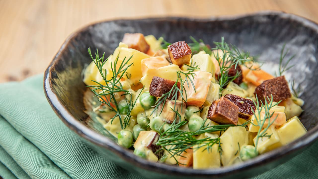 Gemüsiger Kartoffelsalat mit Räuchertofu