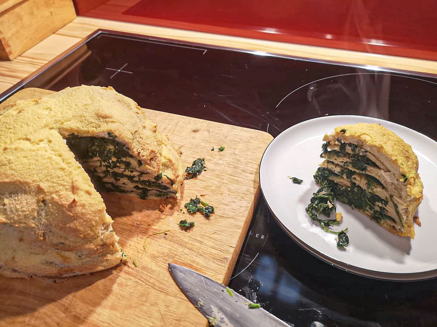 "Die Spinattorte war der Hammer! Wir werden beim nächsten Mal die doppelte Menge machen, da sie auch kalt am nächsten Tag noch göttlich schmeckt. Und die Tofucreme wird bestimmt auch noch mehrfach gemacht. Das Foto zeigt, dass wir nicht viel Zeit zum Bestreichen und keine Tomaten hatten ;-)"