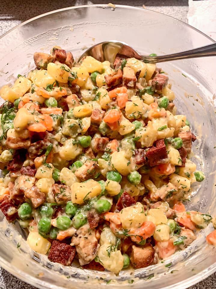 "Bei uns gab es schon zweimal den russischen Salat. Habe meinen Arbeitskolleginnen auch was mitgebracht. Alle waren begeistert! Beim zweiten Mal habe ich sogar noch Kapern dran gemacht...die lieben wir."